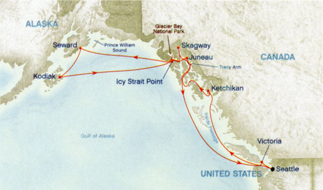 We later learned that this trip was, in fact, a unique opportunity – even this year, the seven-day Princess cruises were aboard the monsters, and next year the Royal Princess is being transferred to the P&O line, also a Carnival property, as the Adonia. The uniqueness comes from the route, which included traversing the "Inside Passage" (protected from potentially rough seas to the west) as well as the Gulf of Alaska, and returning to the departure port.