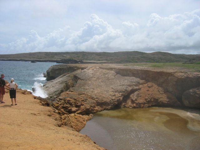 the California lighthouse and adjacent dunes, ruins of past gold mines – coincidentally, Aruba means "red gold," and a mini Gold Rush sprang up when gold was discovered on the north coast in the 1800s; and the nearby Natural Bridge, prominently featured on Aruba touristic materials, as well as on the business card of our taxi driver, Edith.