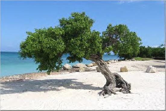 Aruba's main attraction is the always warm – often hot – weather, and white sandy beaches. Fortunately, there is normally a breeze making it more pleasant and keeping you cool. In fact, the Divi Divi tree is said to be Aruba's natural compass, always pointing in a southwesterly direction due to the trade winds that blow across the island from the north-east.