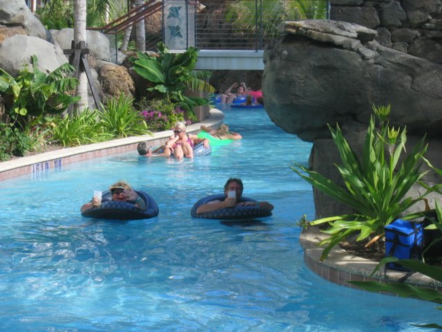 However, the new Surf Club has the latest in indolence – an endless river which circles a palm-covered "island." Underwater jets keep the water moving in a counter-clockwise direction, and upon which one, suitably buoyed, could laze for hours.