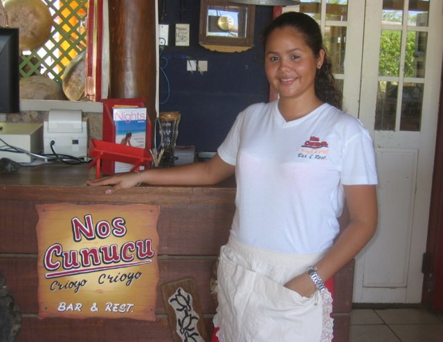 Having read that wild goats thrived on Aruba, I realized that we hadn't tasted any since many years ago at the now-defunct A.V. Ristorante Italiano in D.C. So, on our way to the Marriott we asked Edith if she knew of a restaurant that served typical Aruban fare, particularly goat. She said, yes, Nos Cunucu, "Our Farm" in the local Papiamento language. However, as it was off the beaten track, it was not that easy to find.