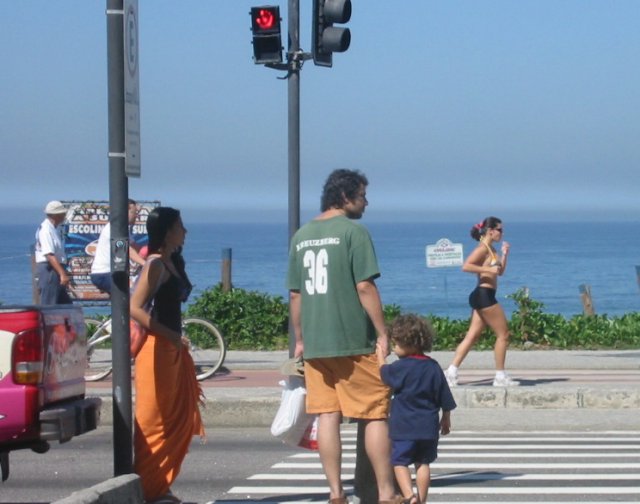 However, when we got there, it was trueeverywhere, people were in aerobic motion. Soccer, of course, since it's their national obsession; it's said that no one goes to work in Brazil on big international game days. One night, returning from a samba club around midnight, we passed a park with a complex of a dozen floodlit fields, all occupied. As well as beach soccer and volleyball, a Brazilian variant of the two, futvolei, is popular: volleyball played without using the hands.