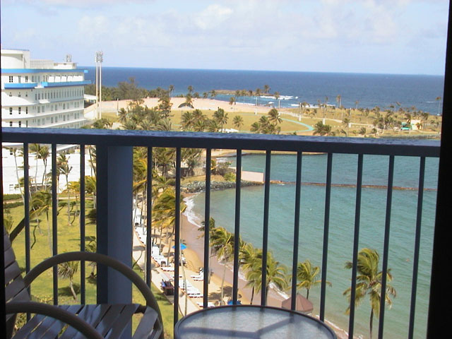 1 Our arrival at the Caribe Hilton was a real revelation after leaving the January deep freeze behind. You can tell a climate is pleasant when the lobby check-in counter is open to the elements! At the time, lodgings were available in a low-rise building that was no doubt the original hotel, and a tall tower. When we checked into our room, we found that not only did we not have an ocean view, we overlooked a large flat roof which was already reflecting the sun's heat.