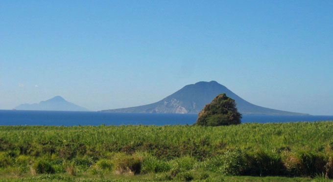 On the northern end of the island, Saba and Sint Eustatius (left to right) are visible in the distance.