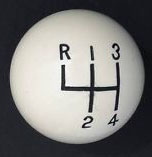 The shift knob wasnothing special, something like a white pool ball with the shift pattern etched in the top.