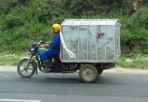 On the ride into town, we spotted a mobile aviary. Perhaps he was a supplier to a later site we visited.