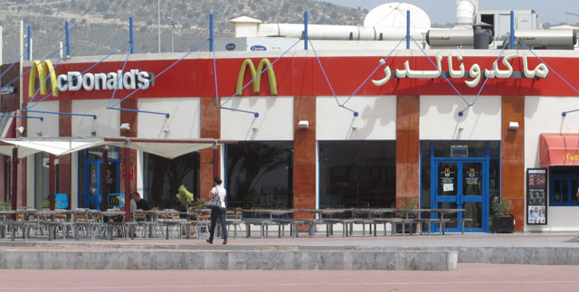 passing the Congress Hall during a break of a high-level meeting. French signage still coexists with Arabic.