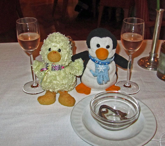 And one night when we returned from dinner we found some new friends waiting for them – a penguin and a duck!