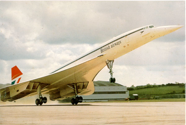 The takeoff used afterburners (or, as the British call it, reheat) and the climb was quite steep, to quickly gain altitude. The combination of steep takeoff angle and 152,000 pounds of thrust really presses you back in the seat! After 30 seconds, the afterburners are shut off, for noise abatement, until over the ocean. They are then used for about 30 minutes while accelerating from Mach .95 to 1.7 – the transonic phase, when air resistance increases sharply. During the transonic phase the aerodynamic center of the aircraft shifts, which is counteracted by fuel being pumped from tanks in the front to the rear of the aircraft. The reverse process occurs during deceleration. I didn't detect any change of any kind when we passed through "the sound barrier" either way. However, the Concorde does seem to be somewhat noisier than subsonic aircraft, probably from the powerful engines, because the noise didn't seem to substantially change with speed. Of course, it is louder when the afterburners are engaged.