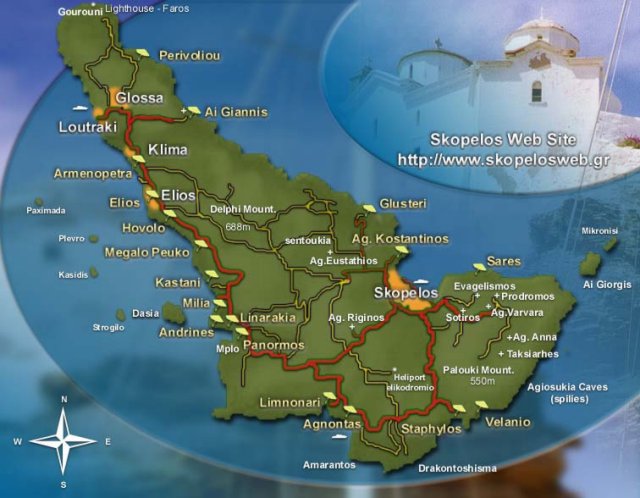 This shows Skopelós' location in the Aegean Sea.