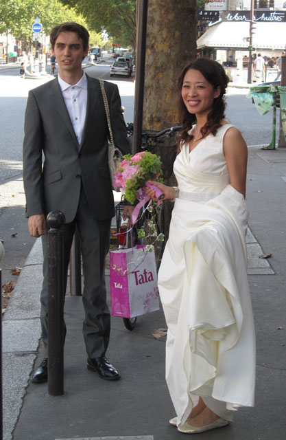 Of course, Paris is the city of romance, and we soon spotted a bride and groom waiting for a car across from La Rotunde, a historic eating place in Montparnesse