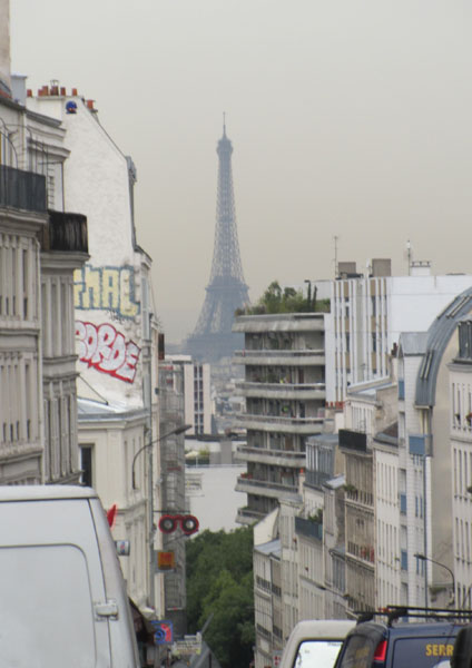 whose main street is fortuitously aligned to provide a view of the Eiffel Tower1, some four miles in the distance. (If it seems closer, it's because the lens was zoomed to 5½ power.)