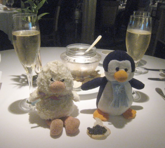 And one can order caviar, with Champagne or vodka, depending on your taste, whenever and wherever you wish. After seeing it being it served to a woman at the Sky Bar, seemingly as a pre-appetizer for a later lunch, we often did the same, as well as before dinner with some world travelers we know.