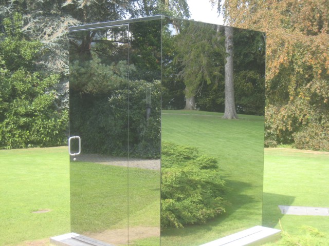 However, there was further evidence outside. This reflective enclosure, "Don't Miss a Sec" by Monica Bonvicini,
