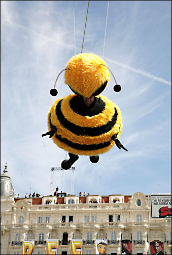 This also is the hotel from whose roof Jerry Seinfeld, in a bee costume, descended – across the road, nearly to the sea, to promote his animated "Bee Movie" during the Cannes Film Festival:
