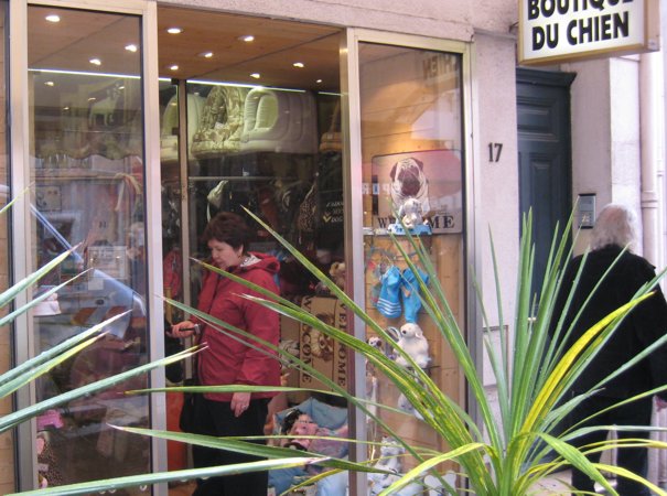 Earlier, on a sunny day that was more typical of our stay, we saw a dog wearing a tooled leather sun visor. Cannes has plenty of "doggie boutiques" where one can purchase any clothing item or accessory.