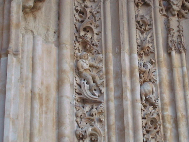 and on the "New Cathedral," constructed between 1513 and 1733, an astronaut added by a whimsical restorer in 1993.