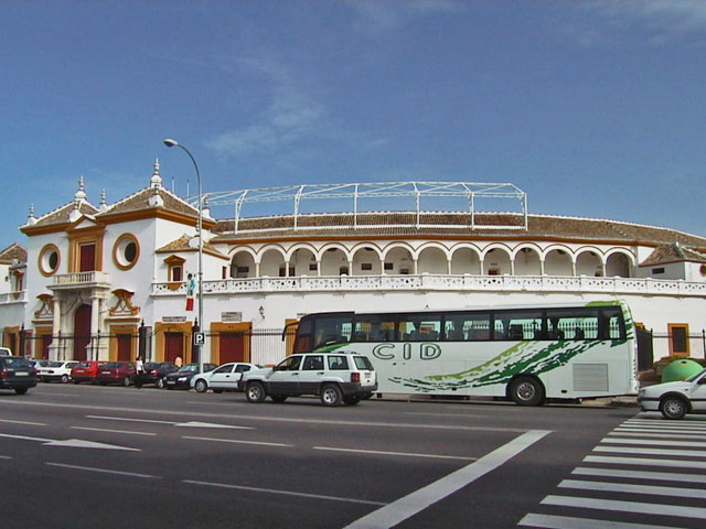 gazes longingly across the road at the bull ring.