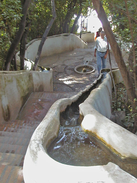 has even more running-water features, including a "water stairway" whose stone banisters channel streams of water alongside several stories of steps.