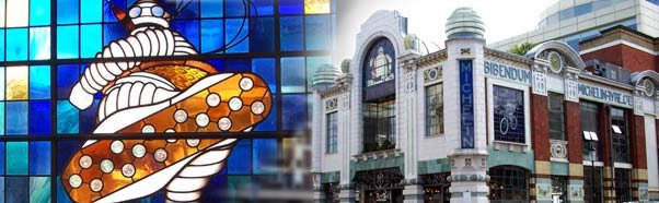 The next week, after a morning visit to London's Victoria and Albert Museum (to see the blockbuster Modernism exhibit that the new director of the Corcoran Gallery is bringing here next spring) Michelin recommended a restaurant that was halfway back to our hotel. We had taken the tube from the hotel to the V&A, but it wasn't that long a walk as long as we'd be stopping for lunch midway. When we called, we found that it was now a totally different type of restaurant, so we next tried Bibendum, which was only a few blocks from the V&A. In case Bibendum sounds familiar, he's the rotund Michelin tire character. The building was formerly Michelin's London headquarters, and there are still several large stained glass windows featuring him.