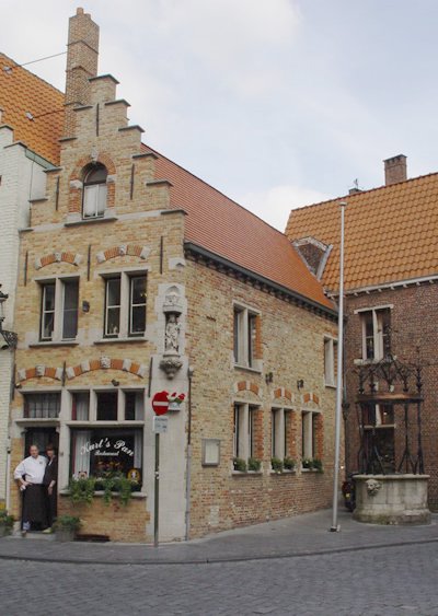 And the phone turned out to be highly useful a couple of times, in ways that I hadn't anticipated. In Bruges one Sunday night, Kurt's Pan, a restaurant recommended by our hotel turned out to be rather small, the ground floor of a townhouse, and was already booked for the evening when we stopped by. So we went outside and consulted the Michelin Red Guide. This photo, from their web site,