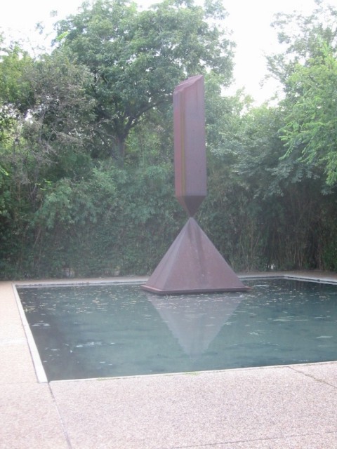 Although the nearby Rothko Chapel had similar restrictions, the sculpture in the reflecting pool – Barnet Newman's memorial to the Reverend Martin Luther King, Jr., "Broken Obelisk" – was available to all, and a view of the interior can be seen here. |